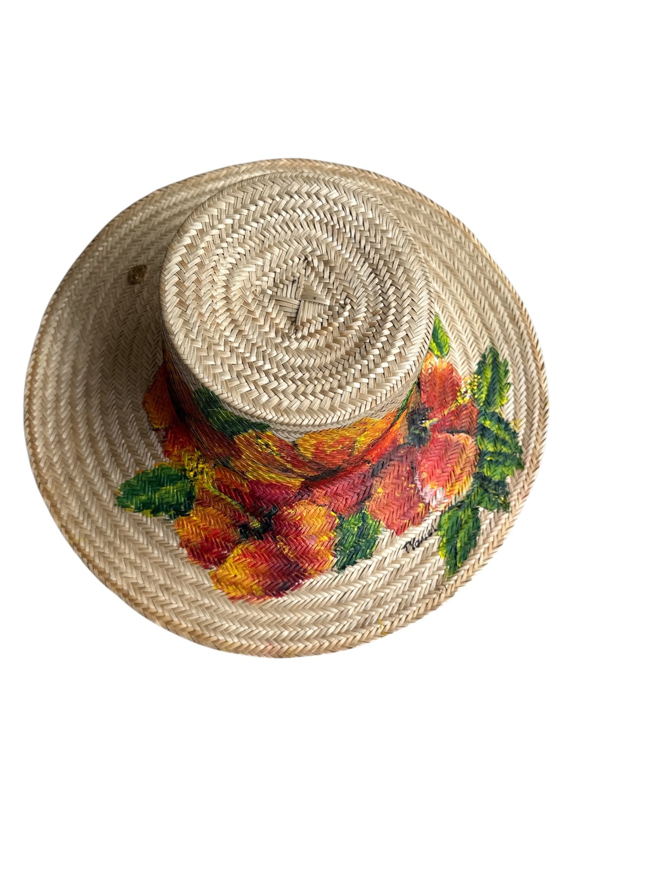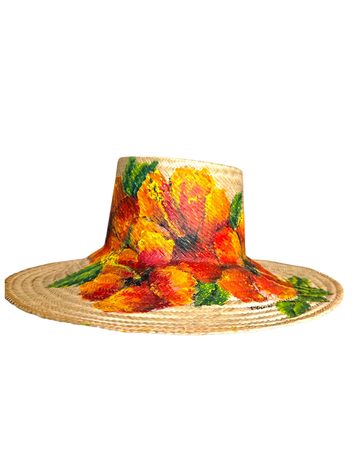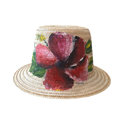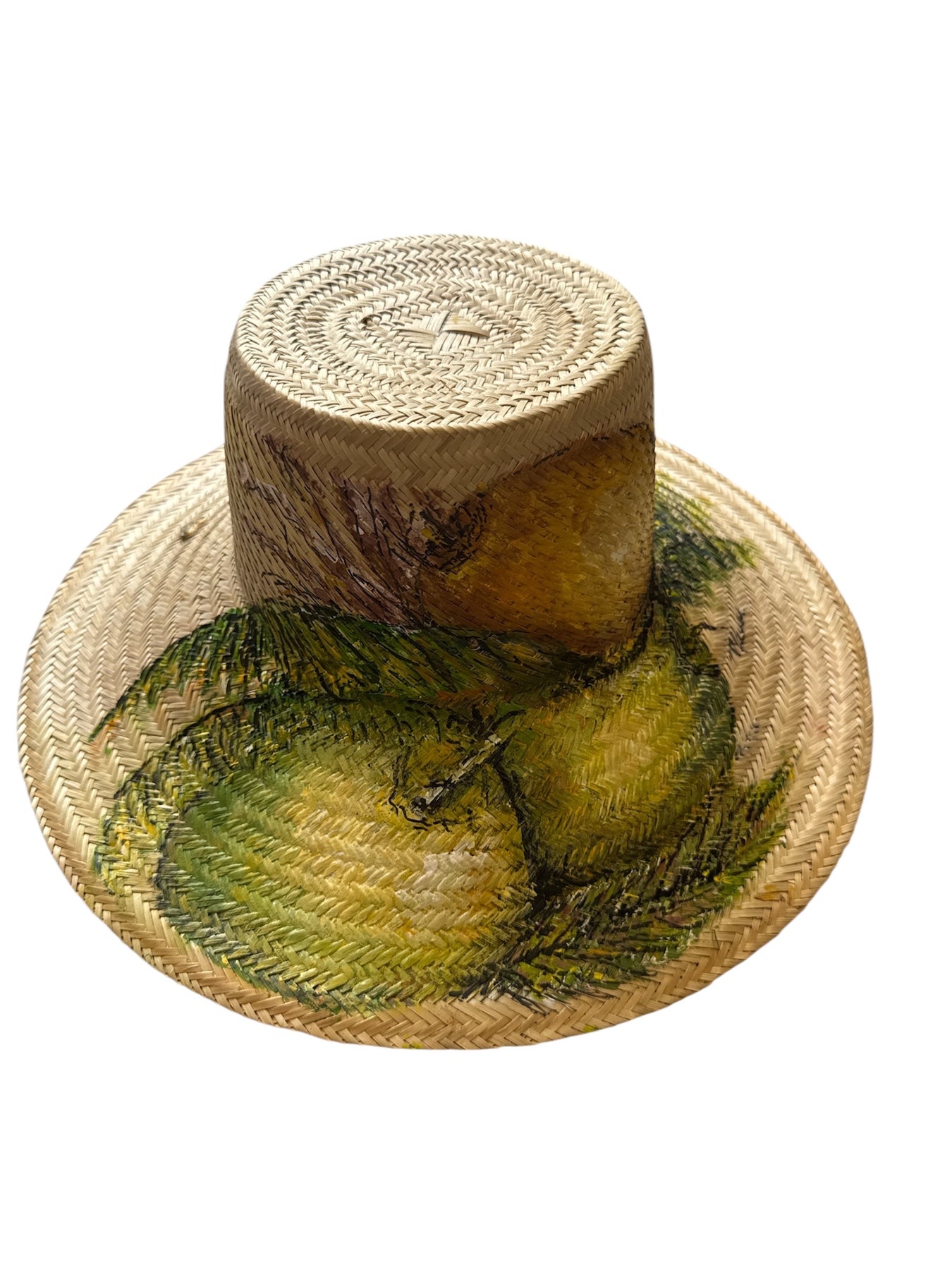 - The metallic tones in the hat are made by painting every single straw fiber piece by hand.