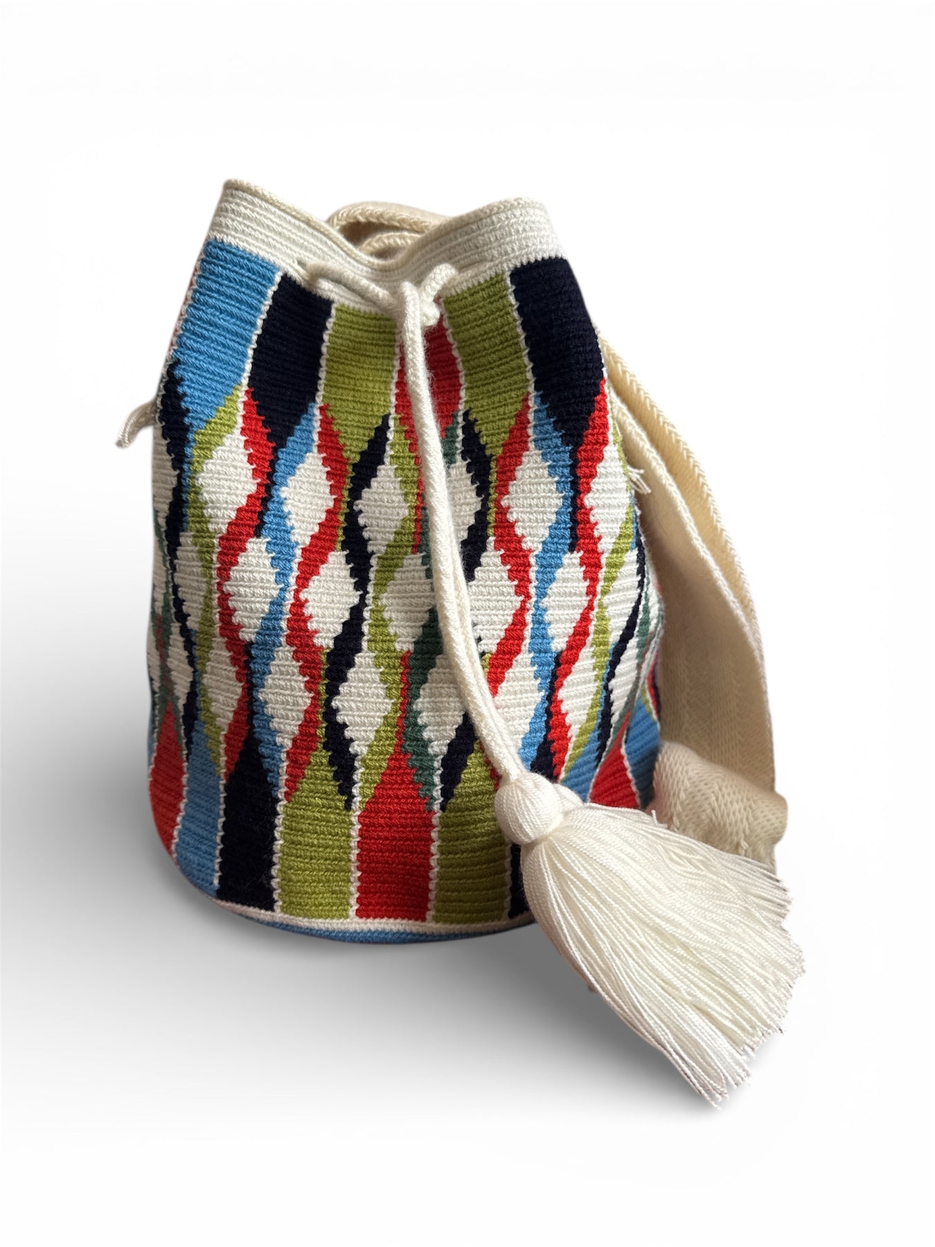 - A spectacular bag, handwoven by Venezuelan artisans from the Wayuu tribe.