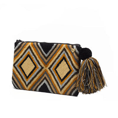 Our Tapiz collection is a form of textile art, contemporary and modern with deep roots in the Wayuu tradition: clutches entirely handwoven on a vertical loom following a centenarian techniques, and following the highest quality standards.