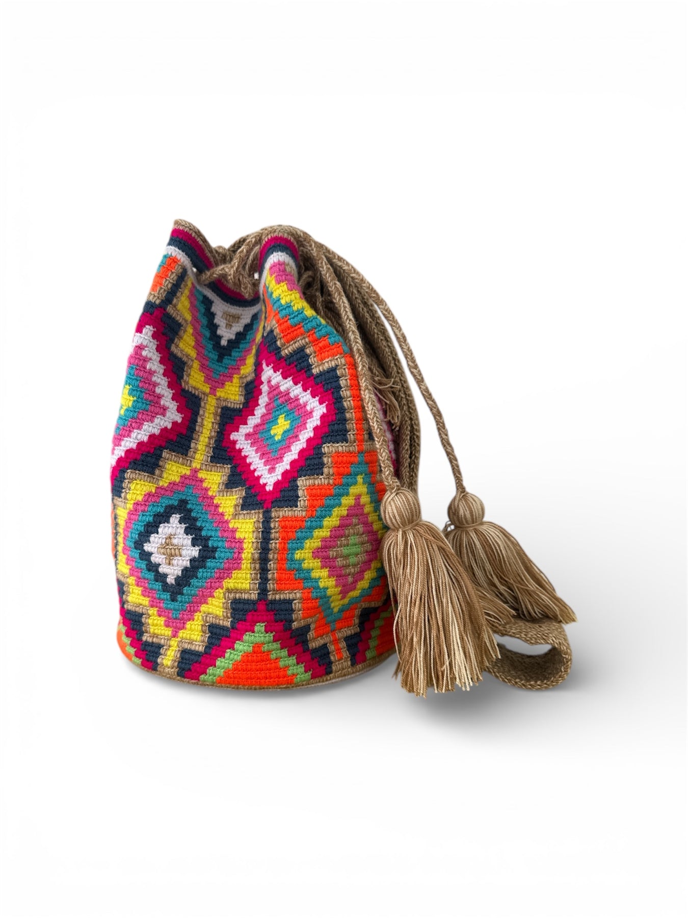 - A spectacular bag, handwoven by Venezuelan artisans from the Wayuu tribe.