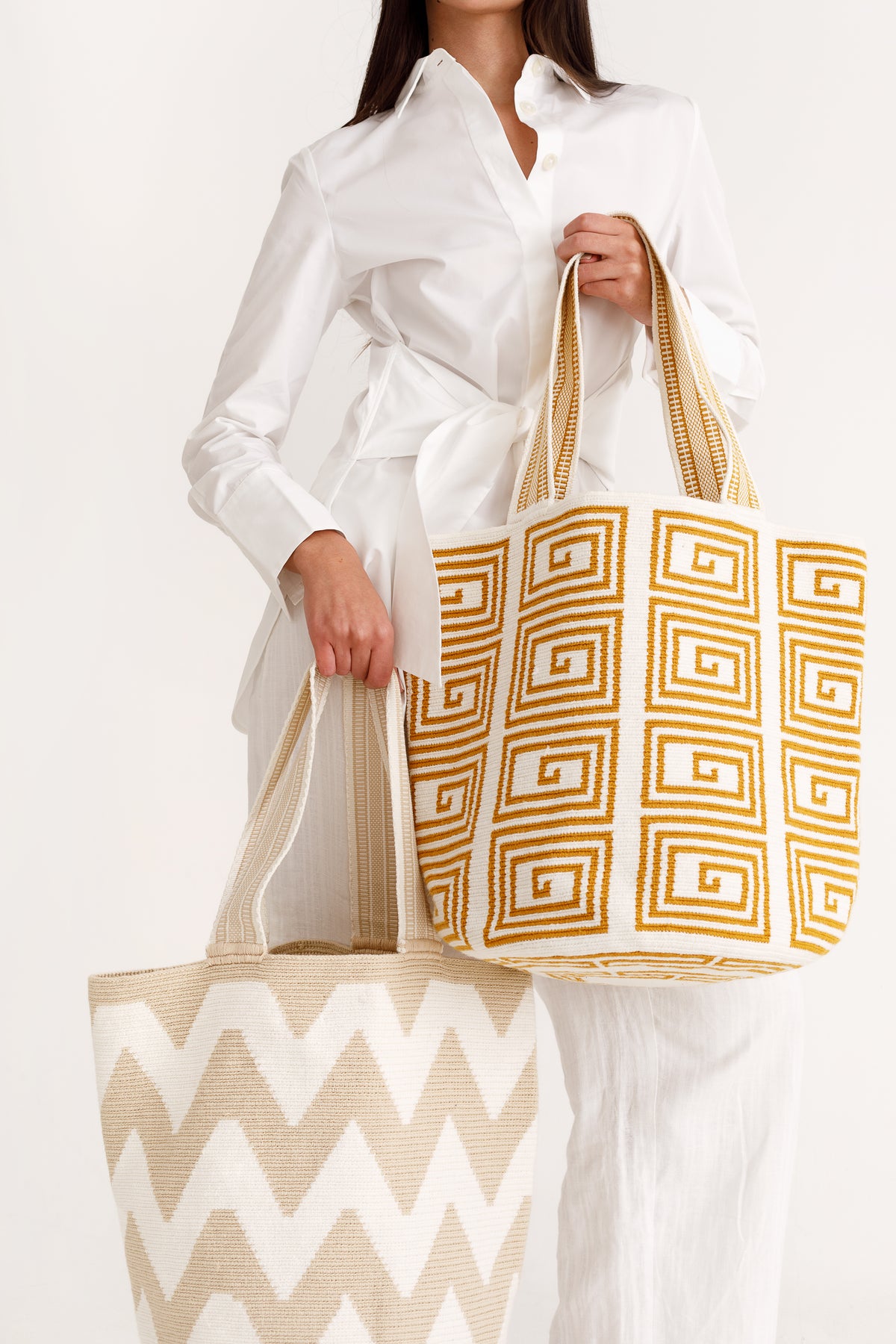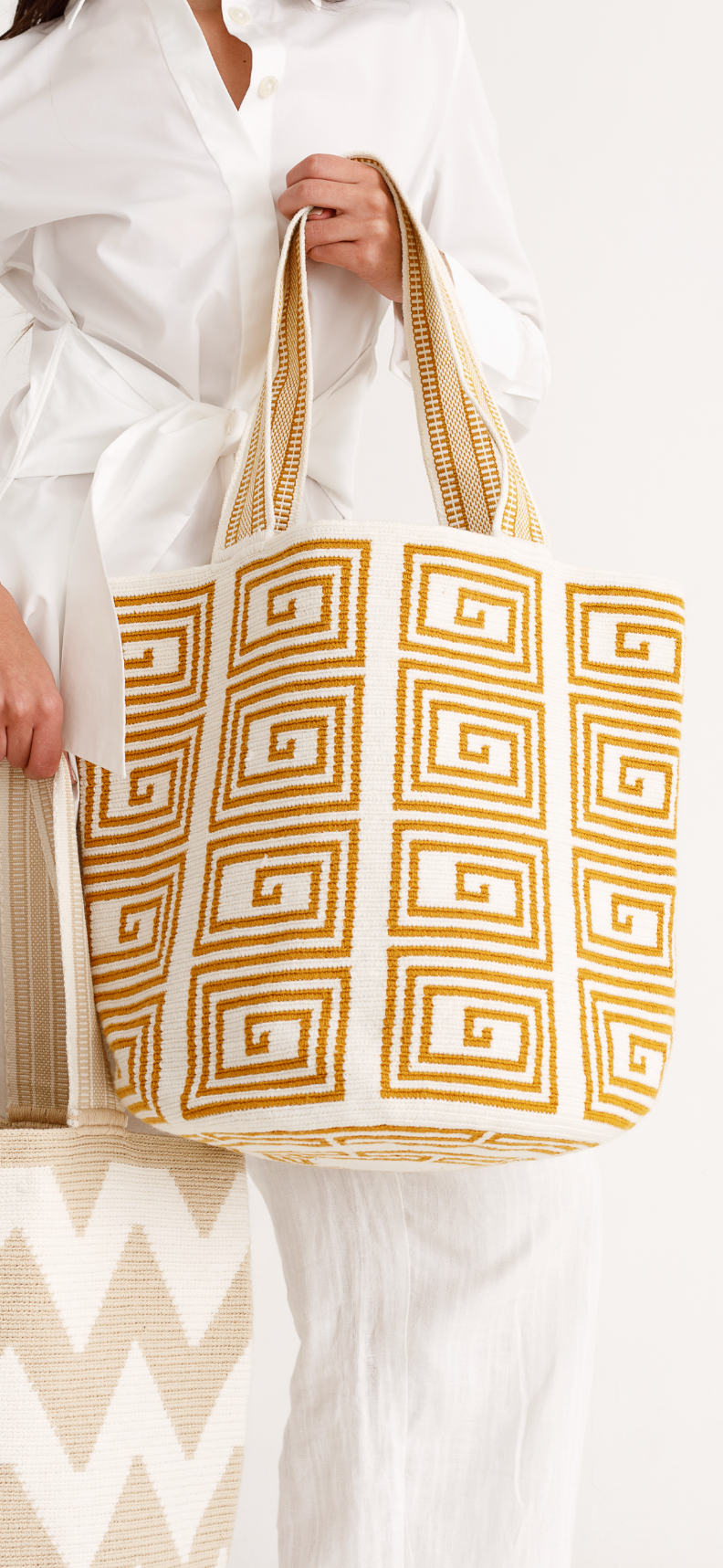 According to the legend, the tradition comes from “Wale´kerü”, a spider goddess that taught the wayuu women how to weave her creative drawings into the Wayuubags. Our designs are handmade by wayuu women who put all their magic, passion, and love to this beautiful bag.
